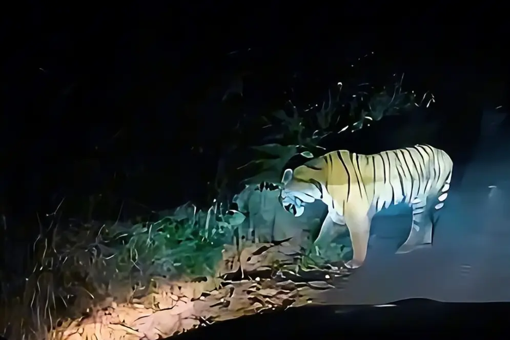 安图县地处长白山腹地,这里生态环境十分优越,森林覆盖率高达85%以上,所以会成为部分野生动物的良好栖息地。专家表示,如果驾车途中遇到野生动物,千万不要惊扰它们,更不要追逐和投喂食物,尤其是像野生东北虎这样体型庞大、攻击力又强的野生动物。