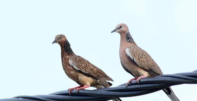 在中国,珠颈斑鸠是最常见的一类,它们既漂亮又独特,脖子上有一串串像珍珠项链一般的图案,也因此得名“珠颈”。